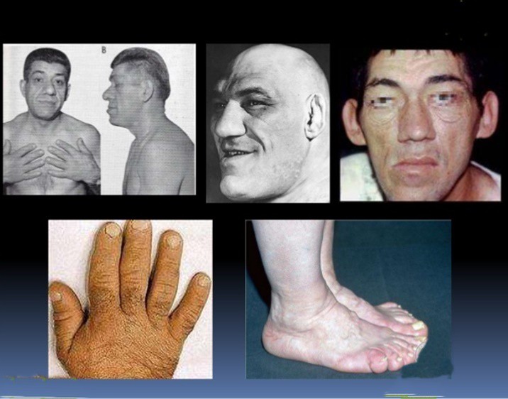 - Descrizione: Gigantismo congenito. Si caratterizza per l'aumento delle dimensioni ossee (principalmente delle mani e dei Piedi) a seguito della secrezione incontrollata dell'ormone della crescita (GH).