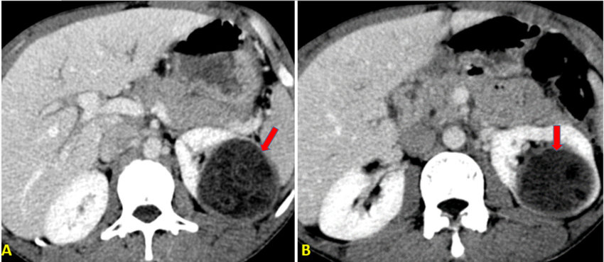 - Descrizione: Lesione cavitaria, spesso scoperta in modo incidentale, localizzata nella ghiandola surrenale e contenente materiale sieroso, emorragico o talvolta parassitario. Può rimanere asintomatica a lungo e sono spesso riscontri occasionali a ecografie, TC o RM eseguite per altri motivi.