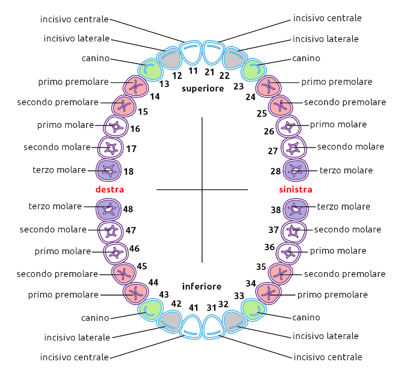 Denti superiori a sinistra: Desiderio di realizzare cose. Azioni per affetti.