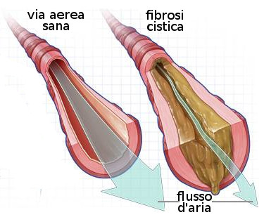 - Descrizione: Malattia autosomica, cronica e ereditaria che produce mucosità spessa accumulata principalmente nei Polmoni, oltre che nel Pancreas, Fegato o Intestino.