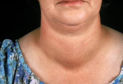- Descrizione: Con il termine gozzo si intende ogni aumento di volume della Tiroide, di consistenza dura, quasi lignea, sclerotizzata, tale per cui l'epitelio ghiandolare è stato completamente sostituito da tessuto fibroso cicatriziale. È uno stato tipico degli stadi tardivi delle patologie tiroidee.
