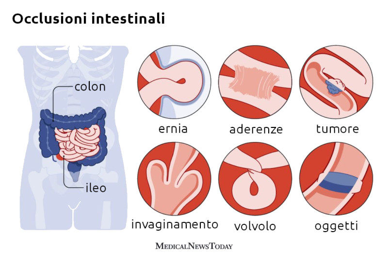 - Descrizione: Interruzione del transito intestinale dovuto a una ostruzione, a una Paralisi o a strangolamento del tubo intestinale.