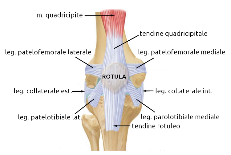 - Senso biologico [!]: La principale funzione della rotula è servire da punto di inserzione per le fibre del tendine del quadricipite e del tendine rotuleo e sopportare le forze applicate.