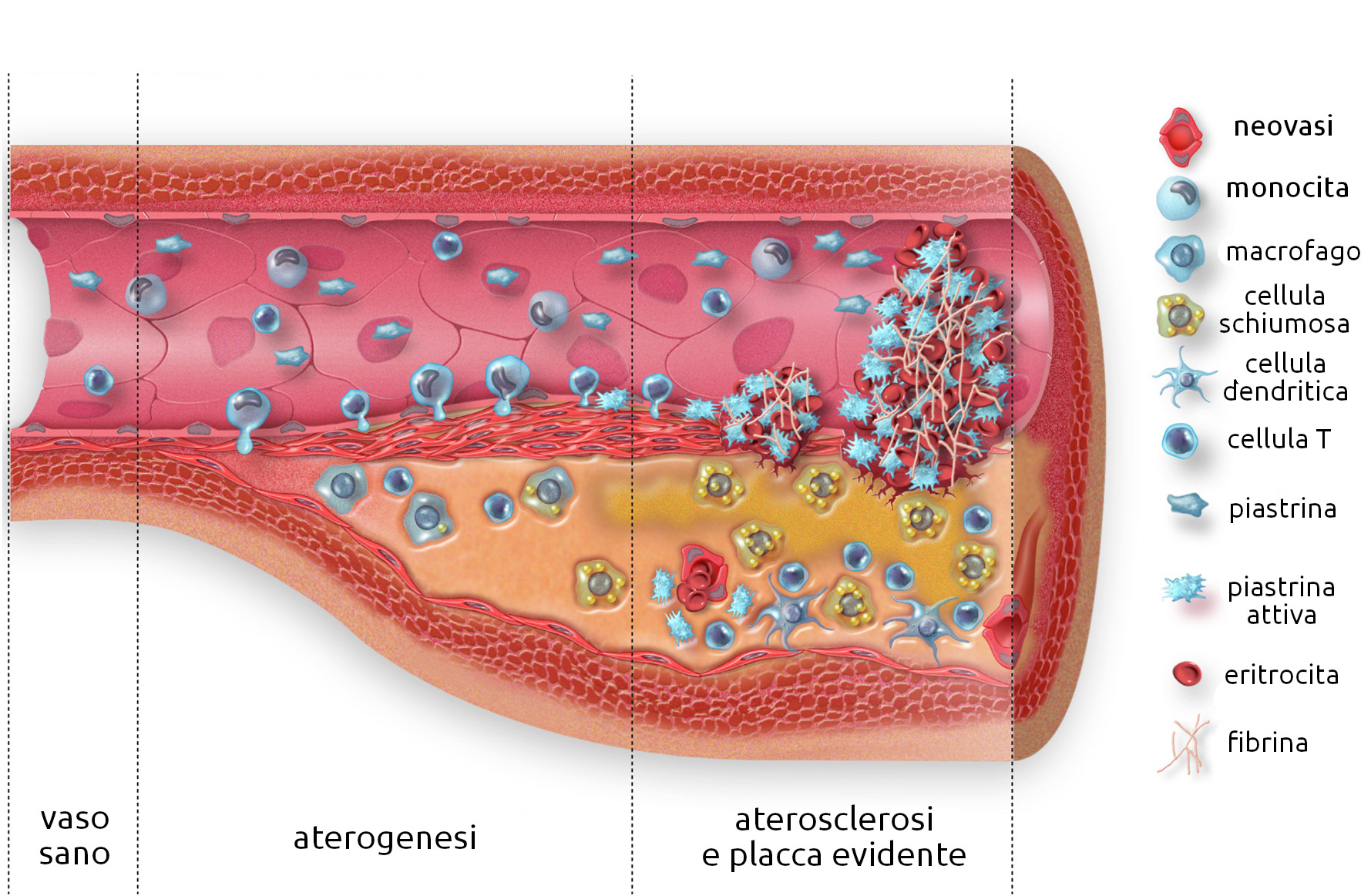 L'ateroma è una placca formata da grassi, proteine e tessuto fibroso che si forma nella parete delle arterie e configura il quadro dell'Arteriosclerosi.