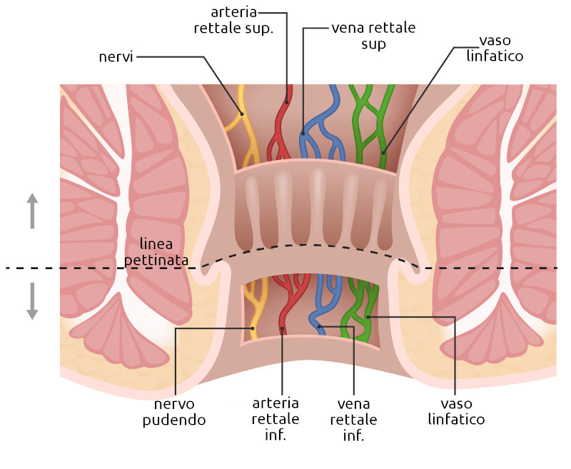 - Descrizione: Struttura mucoso-muscolare che rappresenta il tratto finale del tubo digerente e mette in comunicazione l'intestino con l'esterno. Adiacente al retto, rappresenta il punto di rottura dell'anello primordiale.