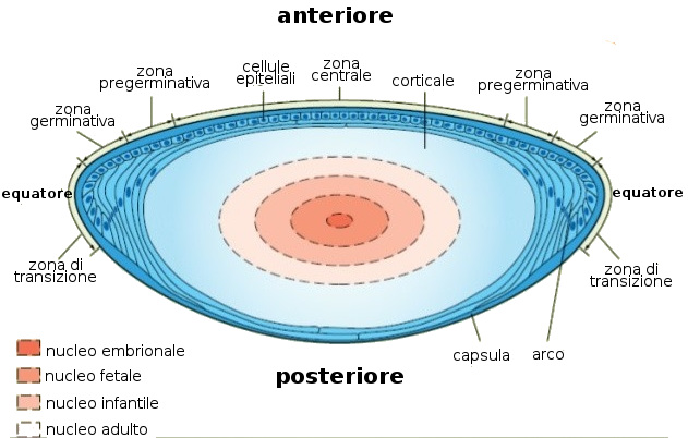 - Descrizione: Componente trasparente dell'Occhio umano a forma di lente, responsabile della messa a fuoco della visione. È situato tra l'umore acqueo e il Corpo vitreo.