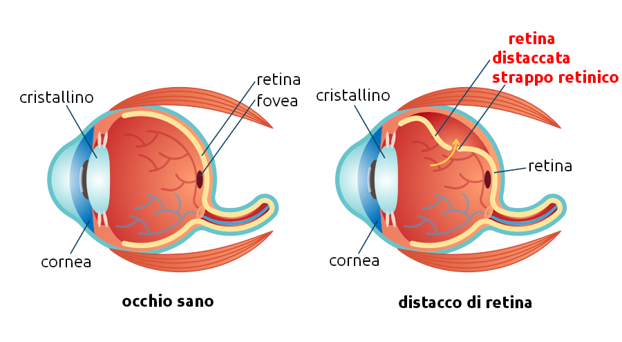 - Descrizione: La Retina si separa dalla Coroide (strato che nutre la retina) nella parte posteriore dell'Occhio per perdita di umor vitreo. Se non viene trattata può sviluppare una cecità.
