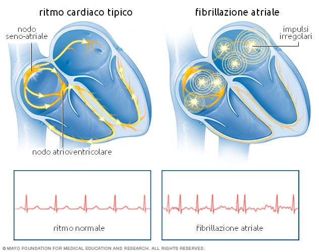 - Descrizione: Disturbo del ritmo cardiaco. Aritmia dovuta a rapide contrazioni degli atri. È un tipo di Tachicardia.