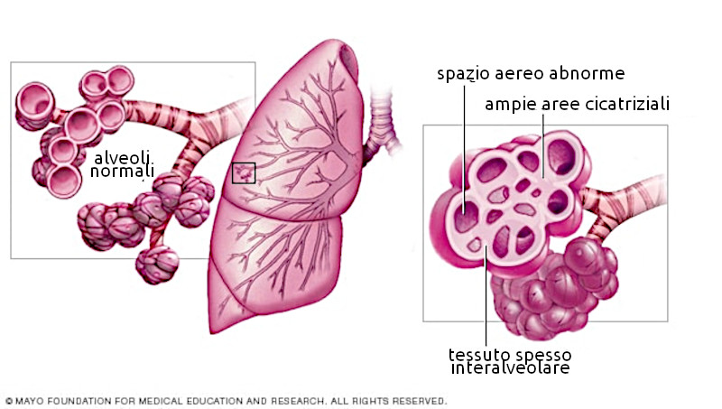 - Descrizione: Forma di Polmonite interstiziale cronica, con Infiammazione e cicatrizzazione degli Alveoli e dei tessuti interstiziali. Presenta sintomi come: mancanza di aria ogni volta più grave, perdita di resistenza, Tosse secca, perdita di appetito e peso, Cianosi e dolori al petto.