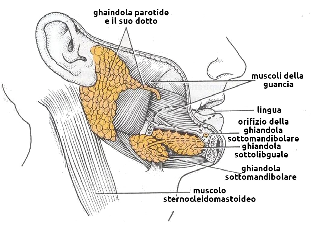 - Descrizione: Ghiandole Esocrine della cavità orale, incaricate della secrezione della Saliva. È l'inizio della Digestione.