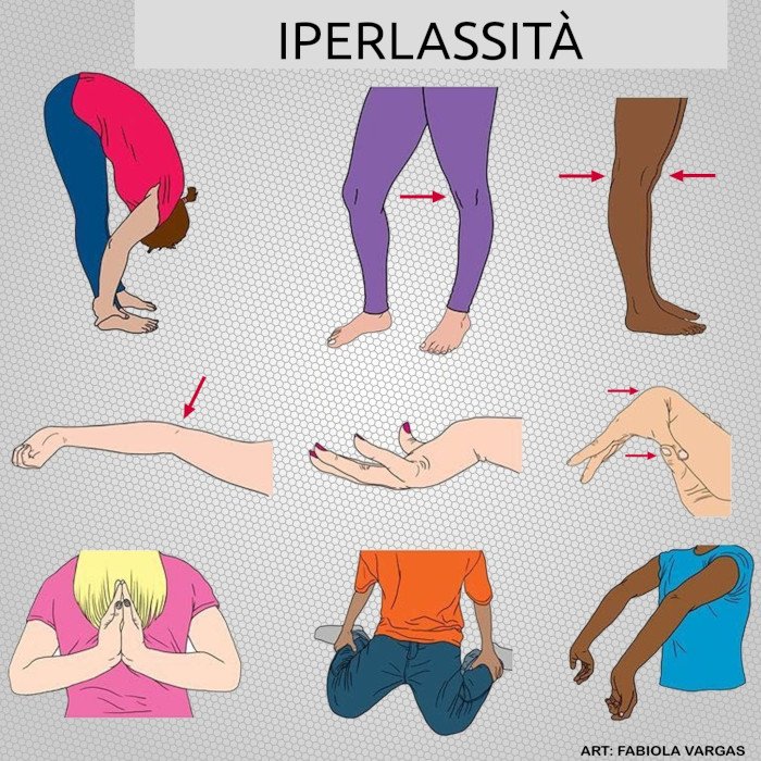- Descrizione: Condizione che presenta gran flessibilità nelle articolazioni, Muscoli, Cartilagini e Tendini, a causa di una alterazione genetica dei tessuti di sostegno. Permette movimenti impossibili per altri.