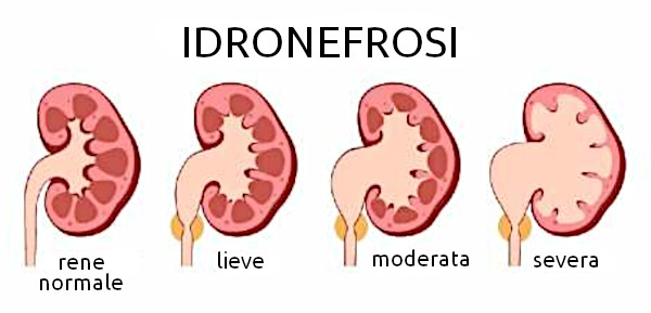 - Descrizione: Dilatazione della Pelvi renale, ed eventualmente anche dei calici renali, con compressione del parenchima. Ciò è dovuto al ristagno di Urina, causato da un ostacolo cronico a valle (Calcoli renali), che non permette il deflusso del liquido. I sintomi dipendono dal grado di compressione che coinvolge le parti funzionali dei Reni. Può essere asintomatica. Le ostruzioni possono essere congenite o acquisite.