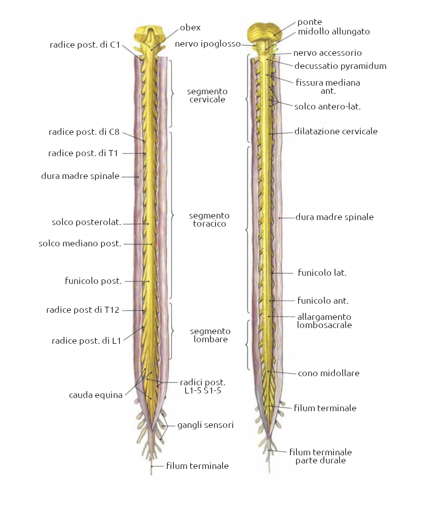 - Descrizione: Cordone nervoso che passa nel canale vertebrale (interno alle vertebre) che fa comunicare l'encefalo con il corpo.