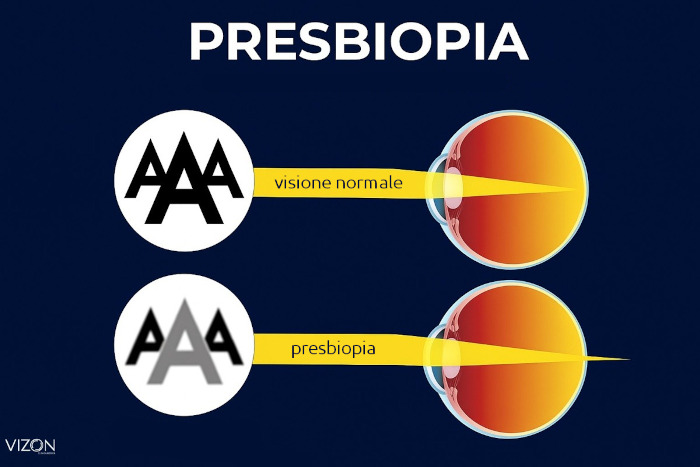 - Descrizione: Difetto oculare che presenta Ipermetropia (difficoltà a mettere a fuoco oggetti vicini) e che solitamente compare in età avanzata.