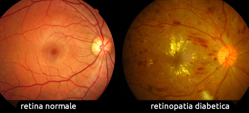 - Descrizione: Malattia oculare che si riscontra spesso nei soggetti affetti da Diabete Mellito, in particolare del tipo 1 (insulino-dipendente). Distinta in forma proliferativa e in forma non proliferativa. Nella prima vi è la presenza di un'intensa proliferazione vascolare, con vasi estremamente fragili (facili alla rottura con danni retinici) ed i sintomi sono: alterata visione (riduzione del visus). La forma non proliferativa non presenta questa proliferazione di nuovi vasi ed i sintomi appaiono più lievi.