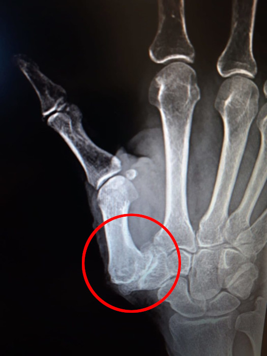 - Descrizione: Artrosi dell'Articolazione carpo-metacarpale della Mano. Presenta degenerazione della Cartilagine articolare con compromissione del movimento e Dolore sia al movimento che a riposo.