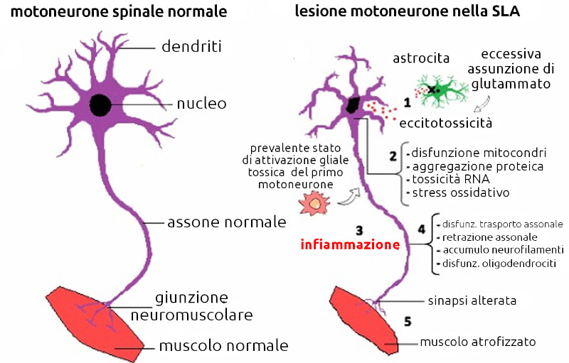 - Descrizione: Malattia degenerativa di tipo neuromuscolare dovuta a morte dei motoneuroni. Provoca una progressiva Paralisi muscolare.